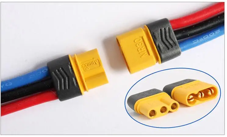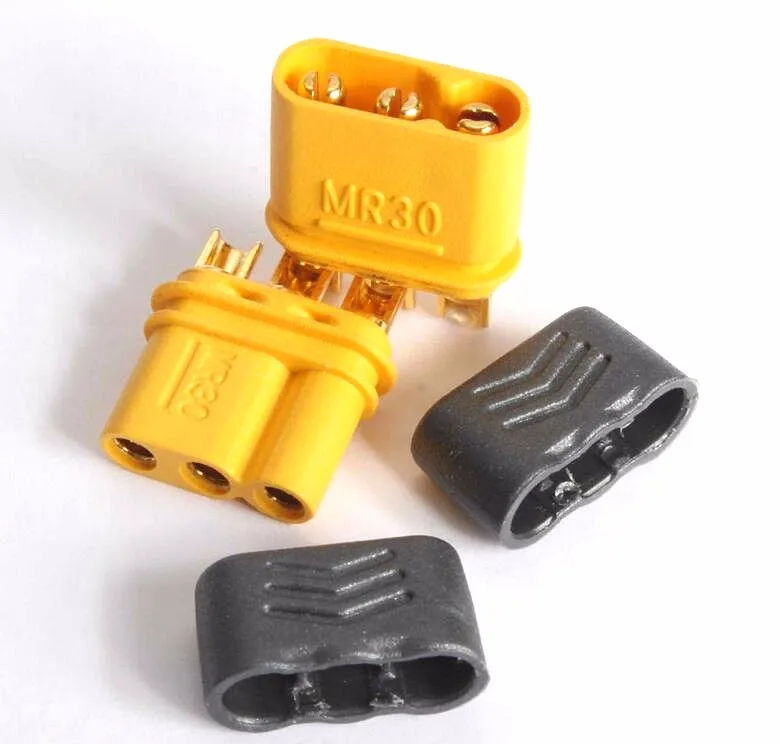 Brand Name: AmassItem Name: MR30 connectorBody Material and Surface Plating: Brass and gold platedInsulation Material: PA66Original Internal Resistance: 0.8MΩ500 Times Internal Resistance: 0.85MΩMax. Continuous Current: 30A (within 30 minitues)Max. Instantaneous Current: 40A (within 1 minitues)Recommended Cable Spec: 18AWG 2.8mm diameterRecommended Soldering Spec: 400° C/3SWeight: 1.2g/pcsInsulation Degree: UL94V-0Machine Life: 3000 TimesFeatures:- Suitable for connecting ESCs and motors- With protective sleeve- Assistive weld foot, more stable