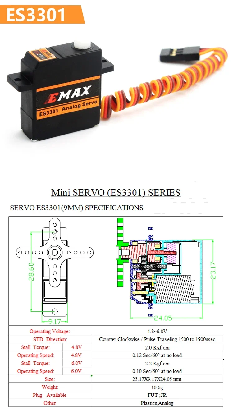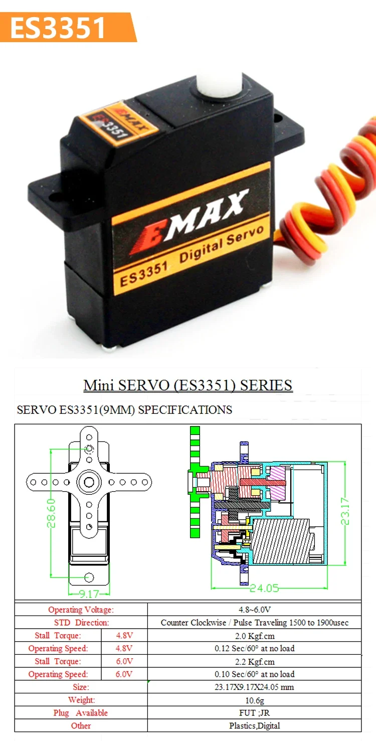 EMAX ES3351 10.6g Mini Plastic Gear Digital Servo for RC Airplane Glider