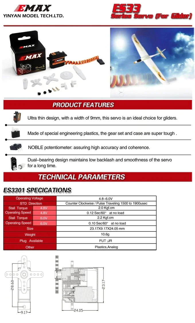 –Ultra Thin Design, With A Width Of 9mm, This Servo Is An Ideal Choice For Gliders.