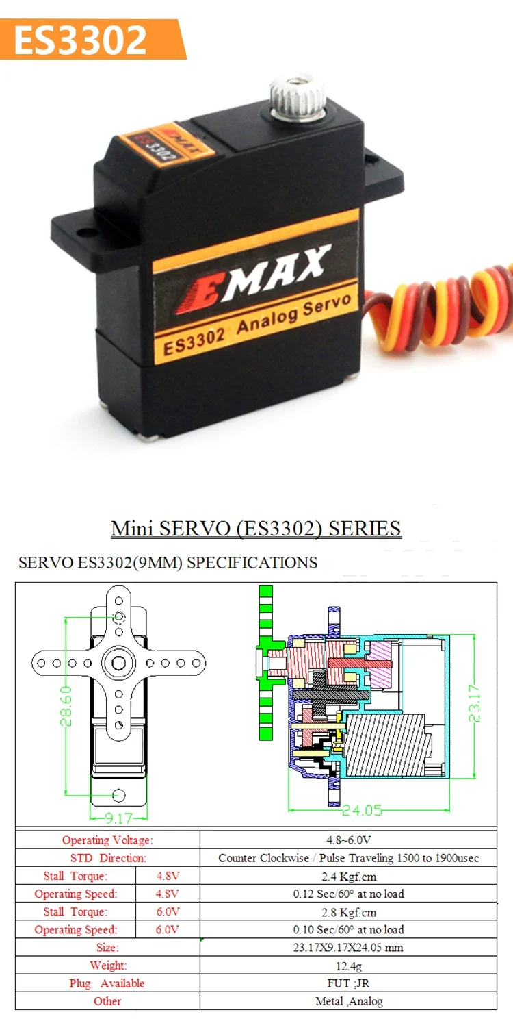 EMAX ES3302 12.4g Mini Metal Gear Analog Servo for RC Airplane