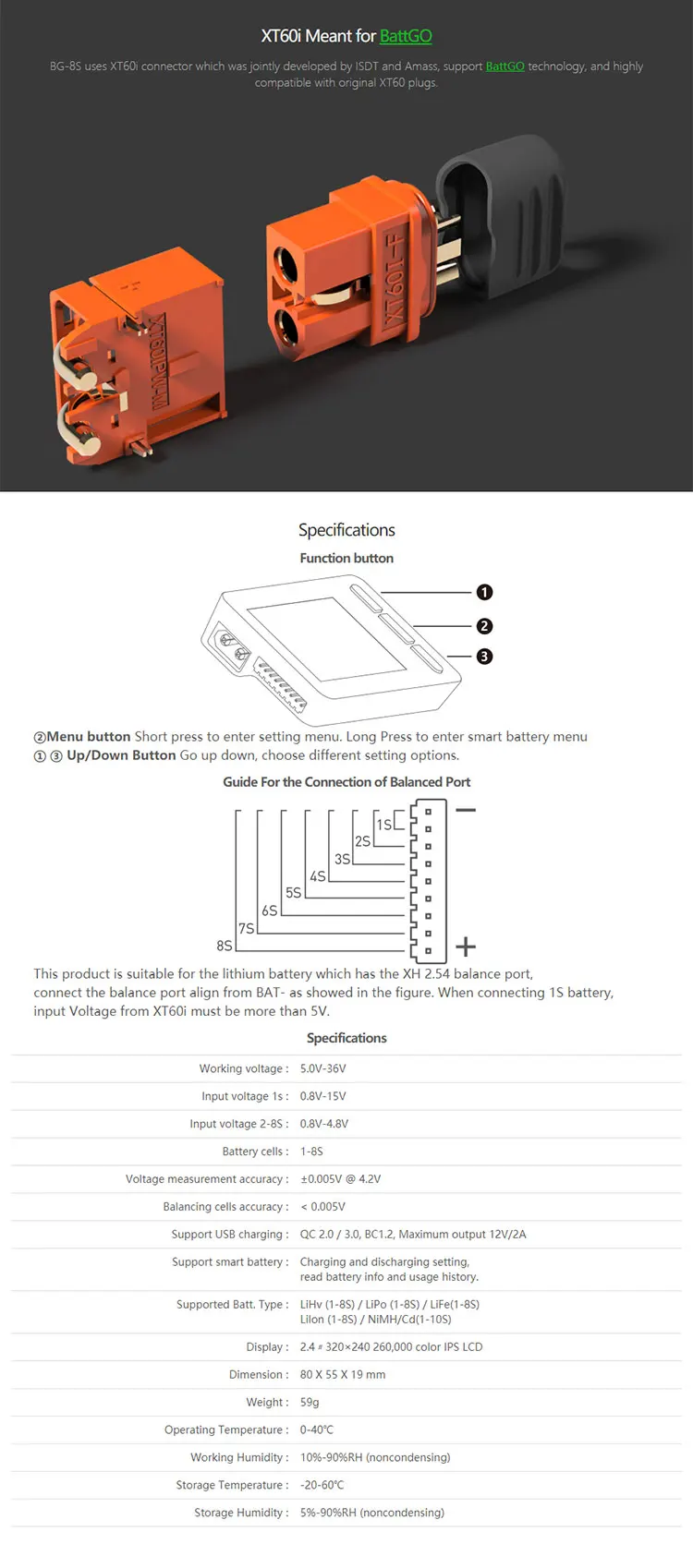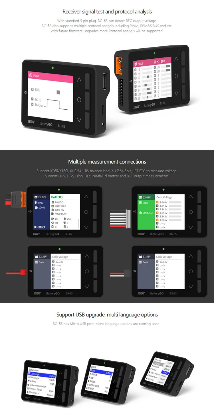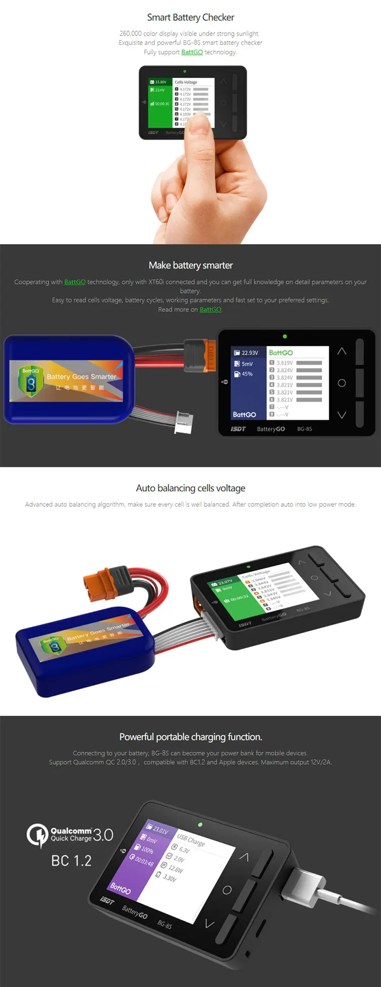 ISDT BattGo BG-8S Smart Battery Checker Balancer Receiver Signal Tester Quick Charge Function