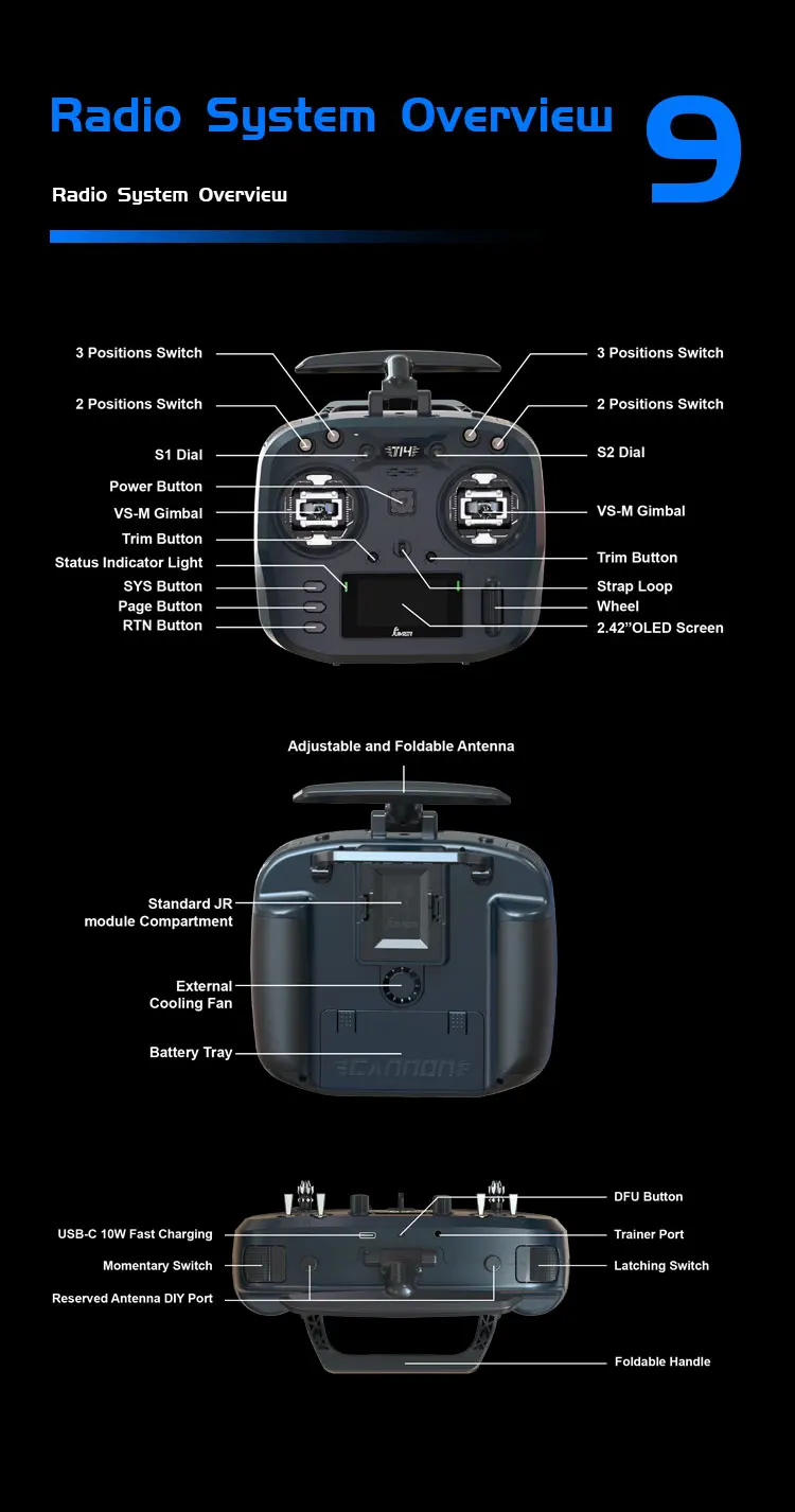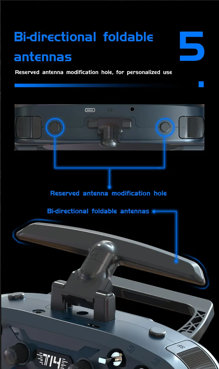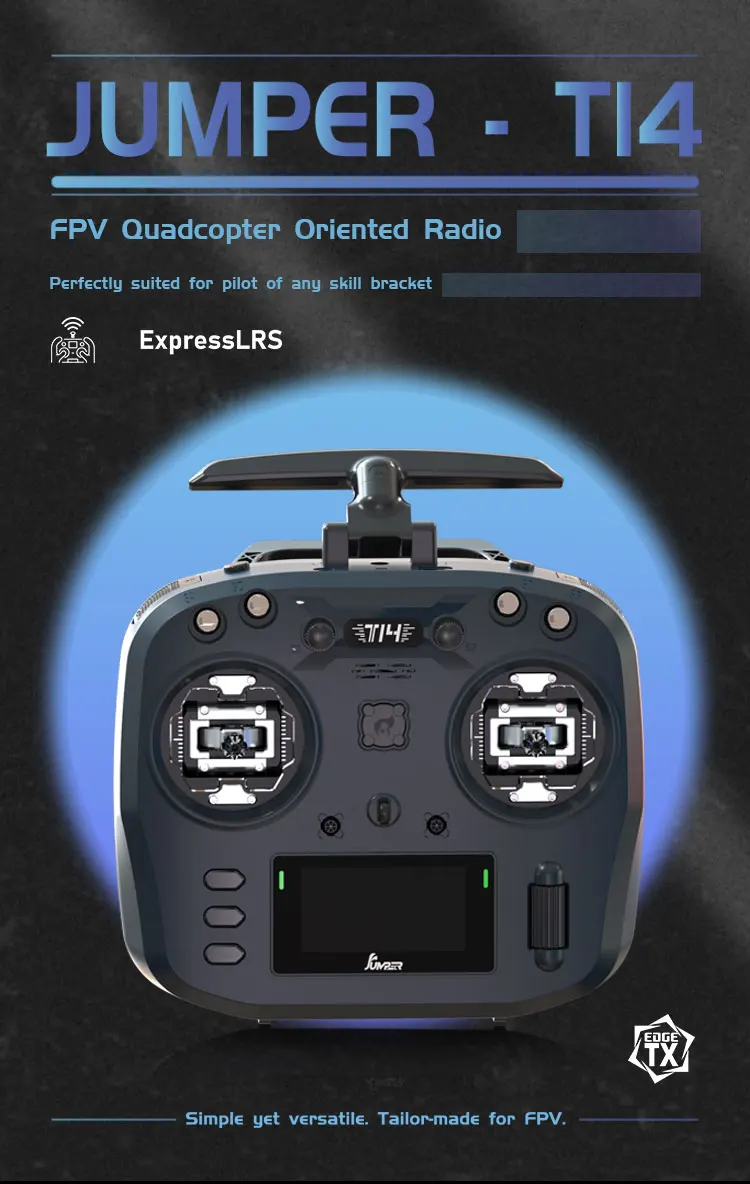 Jumper T14 2.4Ghz/915Mhz 1W ELRS Remote Control CNC Hall Sensor Gimbals Bi-directional Foldable Antenna OLED Display