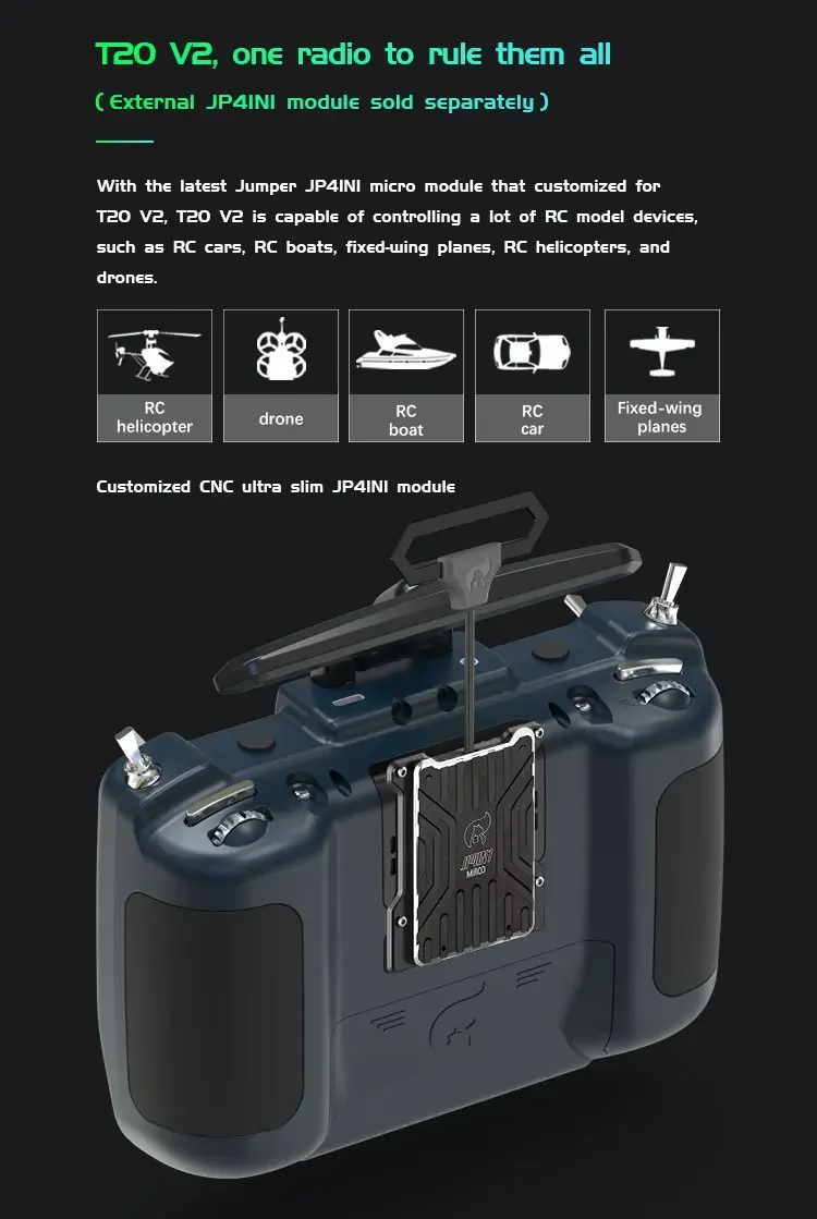 Jumper T20S V2 ELRS ExpressLRS Full Size Radio 2.4GHz 1W RDC90 VS-M Optional Transmission OLED For Long Rang RC Drone