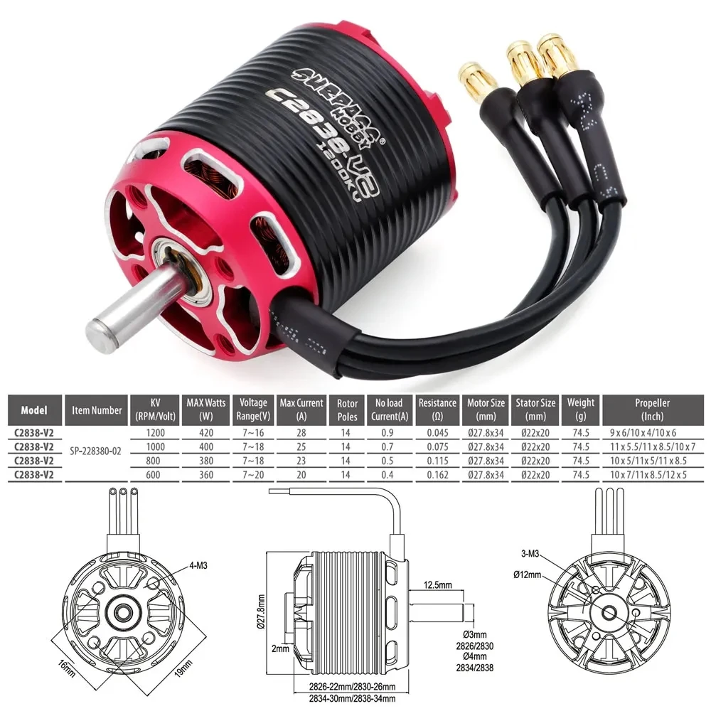 Surpass Hobby C2822 C2826 C2830 C2834 C2838 V2 2-3S 2-4S 14-pole Outrunner Brushless Motor For Fixed-wing Aircraft Airplane