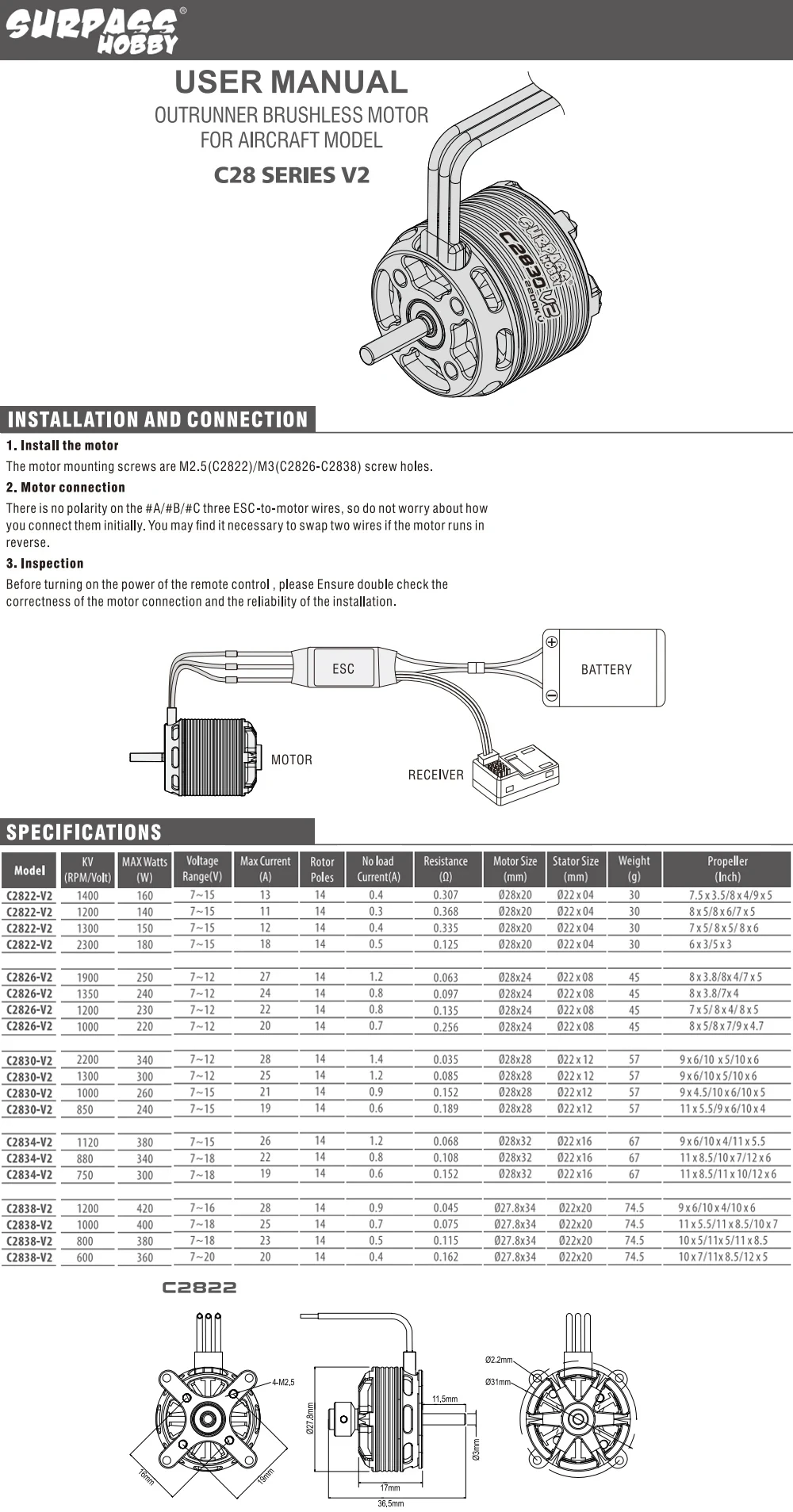 | Model Number | Surpass Hobby C2822 C2826 C2830 C2834 C2838 |