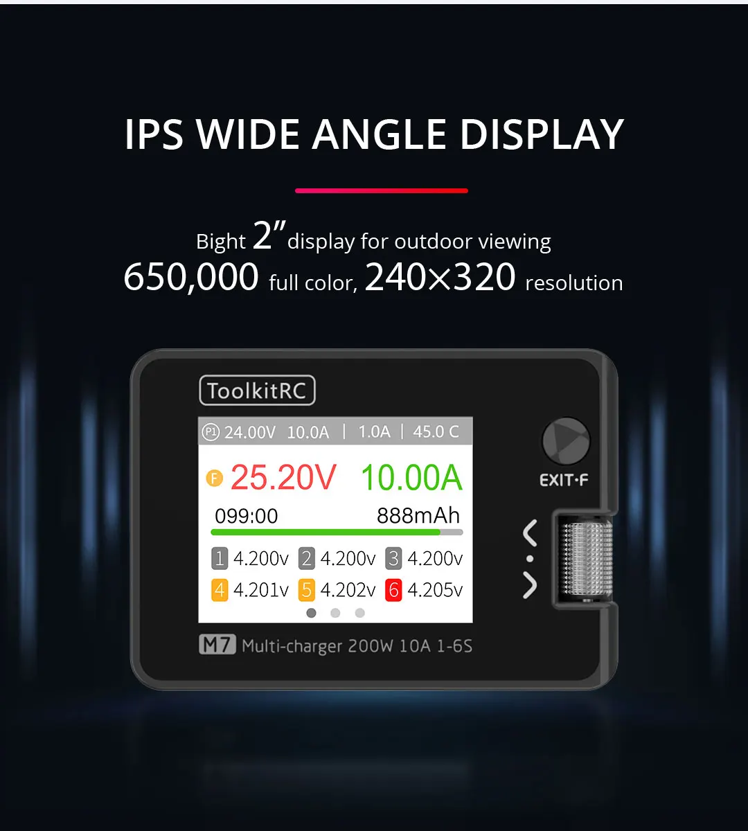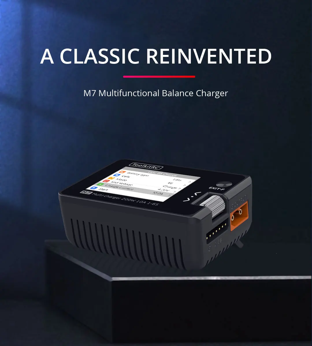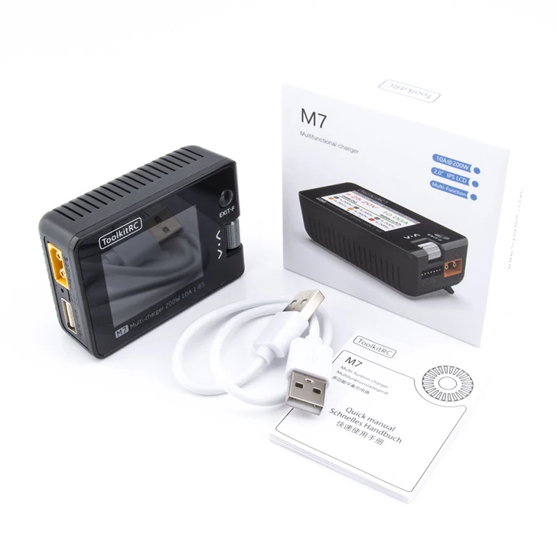 ToolkitRC M7 200W 10A 1-6S Lipo High Power Lithium Battery Multifunctional Balance Charger Discharger 2.0inch LCD For RC Drones
